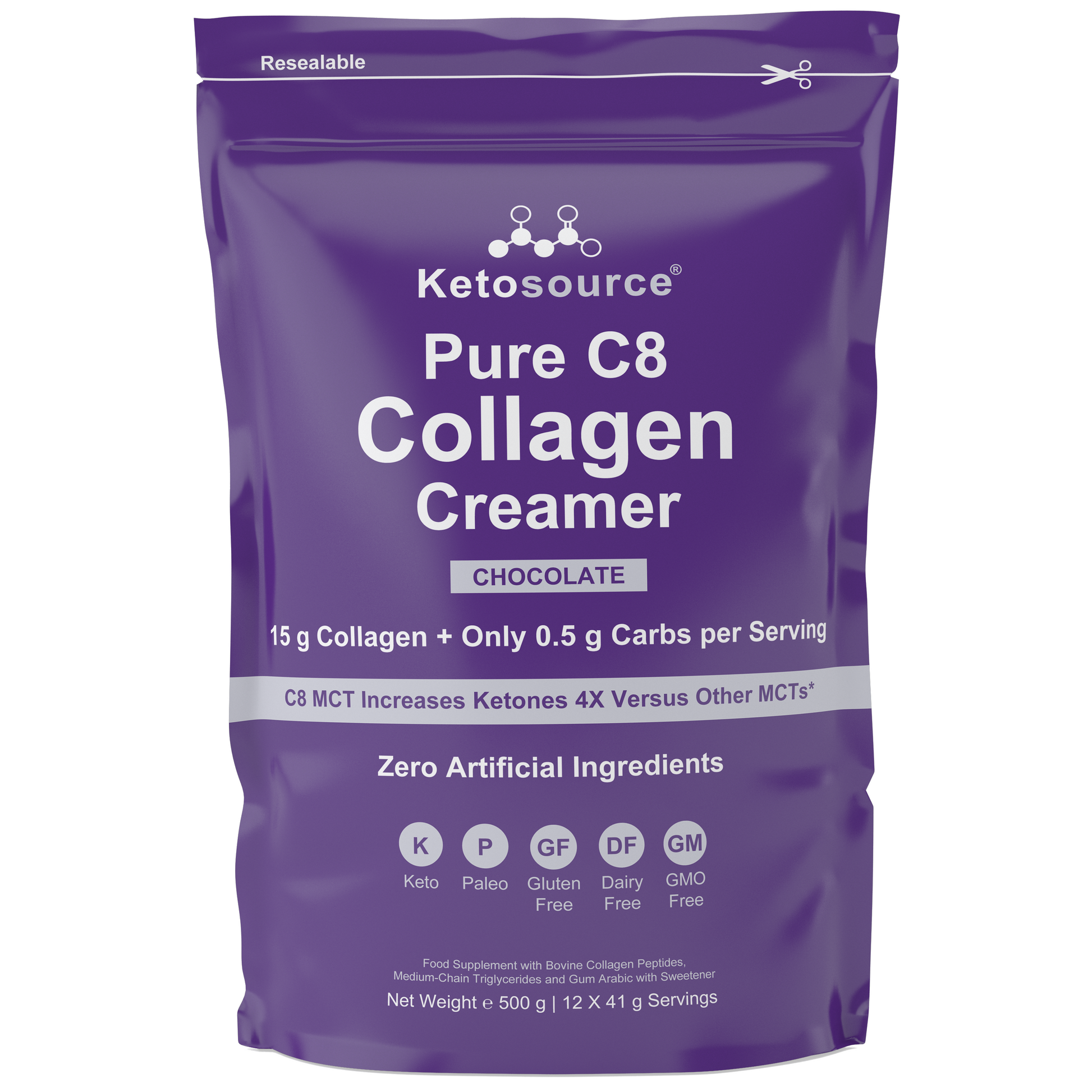 - Active Ingredient Purity. Pure C8 Collagen Creamer has the highest purity level of the active ketone boosting ingredient C8 MCT.